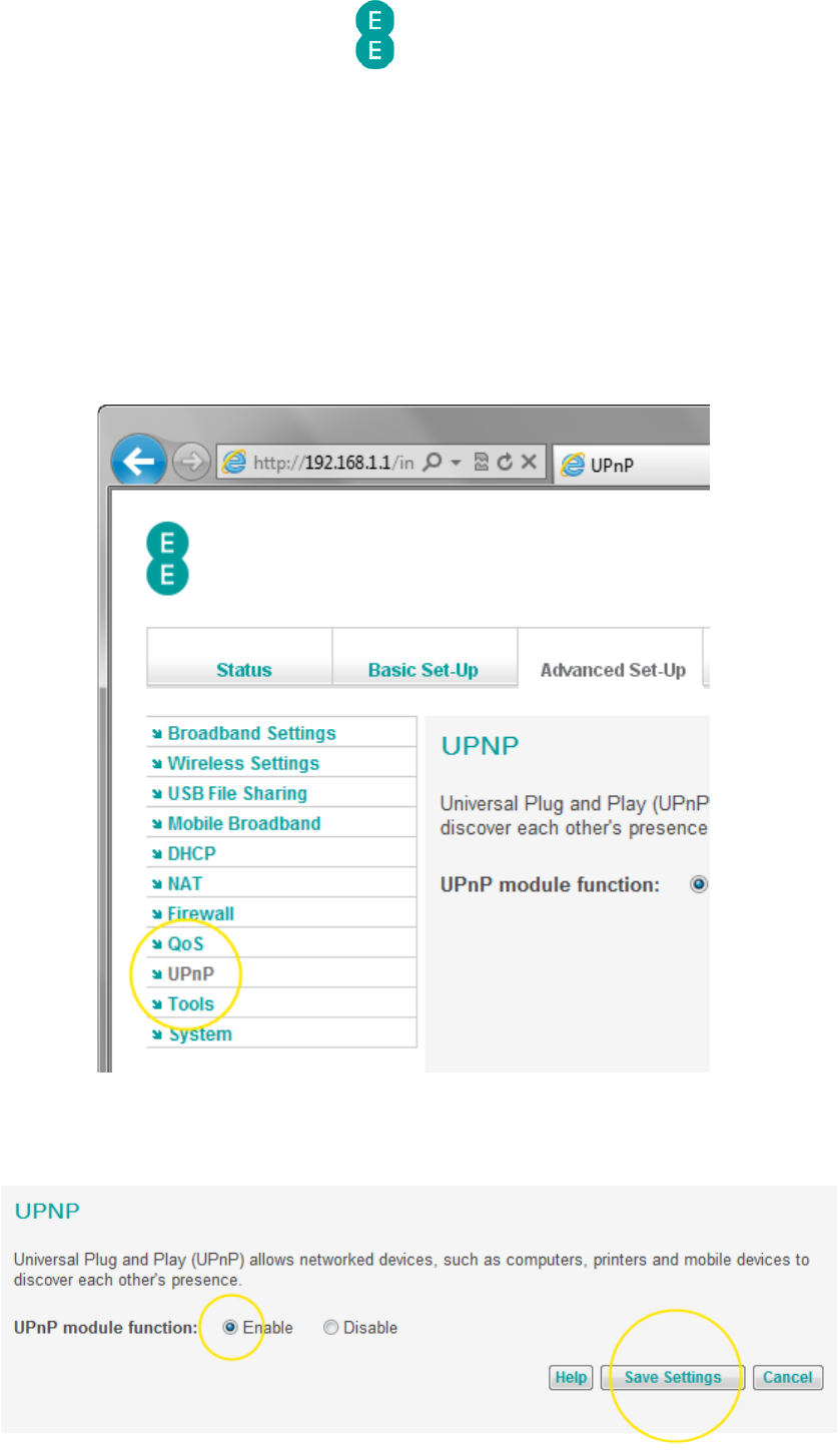 switch UPnP on (this is the default setting) or ‘Disable’ to switch off UPnP – in this